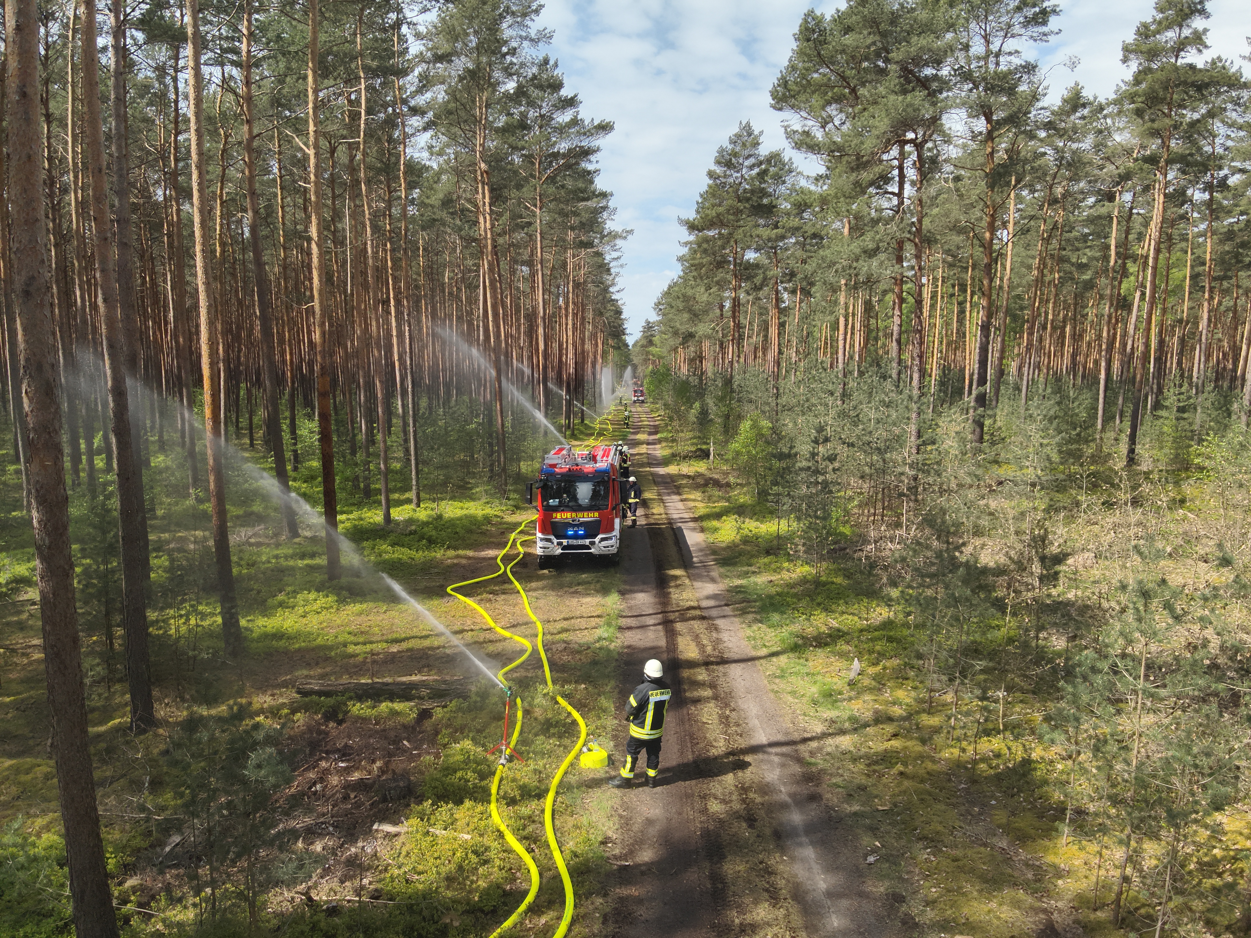 Löschübung auf einem der Waldbrandriegel der Stiftung Stift Neuzelle